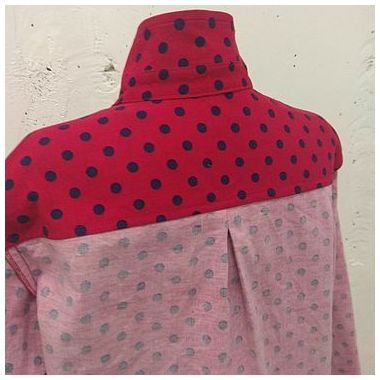 Рубашка из микровельвета .ткань 100%хлопок . Рубашка прямого покроя . скруглённый низ . На спинке складка для комфортной посадки . Пуговицы темно синего цвета в тон горошка . В наличии размер 42 и 52,под заказ любого размера до 62